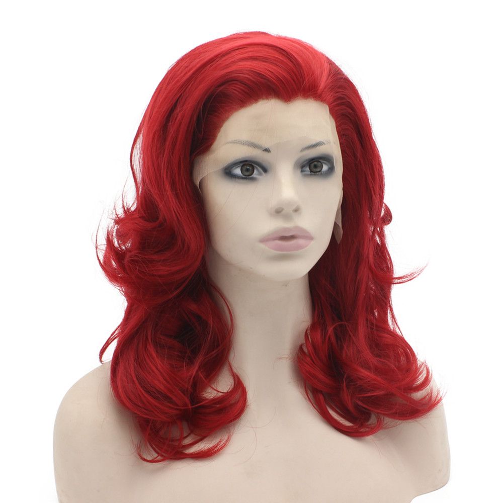 Shoulder Length Wavy Red Lace Front Synthetic Hair Natural Party